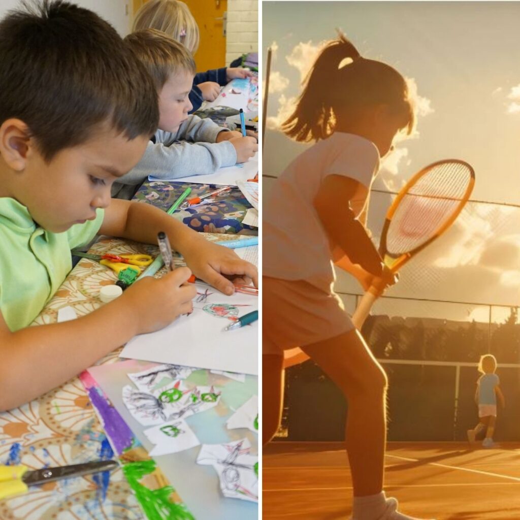 Offrez à votre enfant un combo sport & créativité avec notre stage dessin et initiation tennis ! Au programme : une demi-journée de tennis pour se dépenser et une demi-journée de dessin pour explorer son imaginaire. Un équilibre parfait entre énergie physique et calme artistique pour s’amuser et progresser. Animé par Sophie Lys et le Dyle Open club